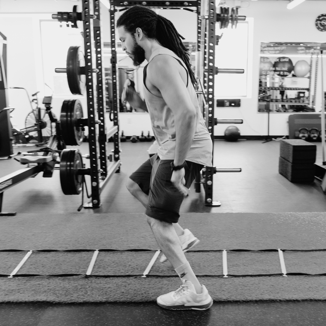 Using a combination of dumbbells, mini bands and bodyweight, you’ll train through our signature six primal movement patterns, all while keeping one foot on the ground at all times. That means no jumping, no pounding—just smart, effective movement that builds real-world strength.